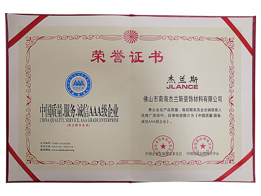 杰蘭斯裝飾材料有限公司秉承“以人為本、科技為先”的經(jīng)驗理念,堅持規(guī)模化運作,規(guī)范化經(jīng)營的發(fā)展思路,建立了完善的營銷網(wǎng)絡(luò)及高素質(zhì)的銷售隊伍,擁有一支豐富經(jīng)驗的設(shè)計團隊,專門配合建筑裝飾材料的深化設(shè)計及工藝構(gòu)思,品牌精益求精理念,高品位的產(chǎn)品、良好的質(zhì)量與精湛的工藝,建立了良好的口碑.