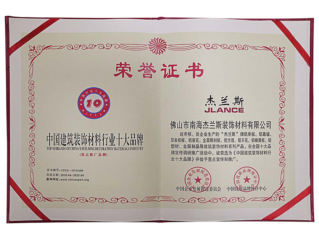 佛山市南海杰蘭斯裝飾材料有限公司是一家專業(yè)生產(chǎn)室內(nèi)外金屬鋁單板、鋁單板,天花鋁單板,氟碳鋁單板,木紋鋁單板,鋁單板加工廠等鋁單板生產(chǎn)廠家及鋁型材加工噴涂的現(xiàn)代化企業(yè),是集設(shè)計、生產(chǎn)、銷售、安裝一條龍服務(wù)的集團公司。公司擁有先進的數(shù)控鈑金加工設(shè)備,配備了日本蘭氏全自動靜電氟碳涂線、數(shù)控沖床、數(shù)控剪板機、數(shù)控折彎機及全自動真空吸塑熱轉(zhuǎn)印機、數(shù)控?zé)釅簷C等多套先進的高精度的幕墻產(chǎn)品生產(chǎn)加工設(shè)備。