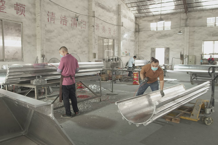 6、安裝施工方便快捷。鋁板在工廠成型,施工現(xiàn)場不需裁切,固定在骨架上即可。